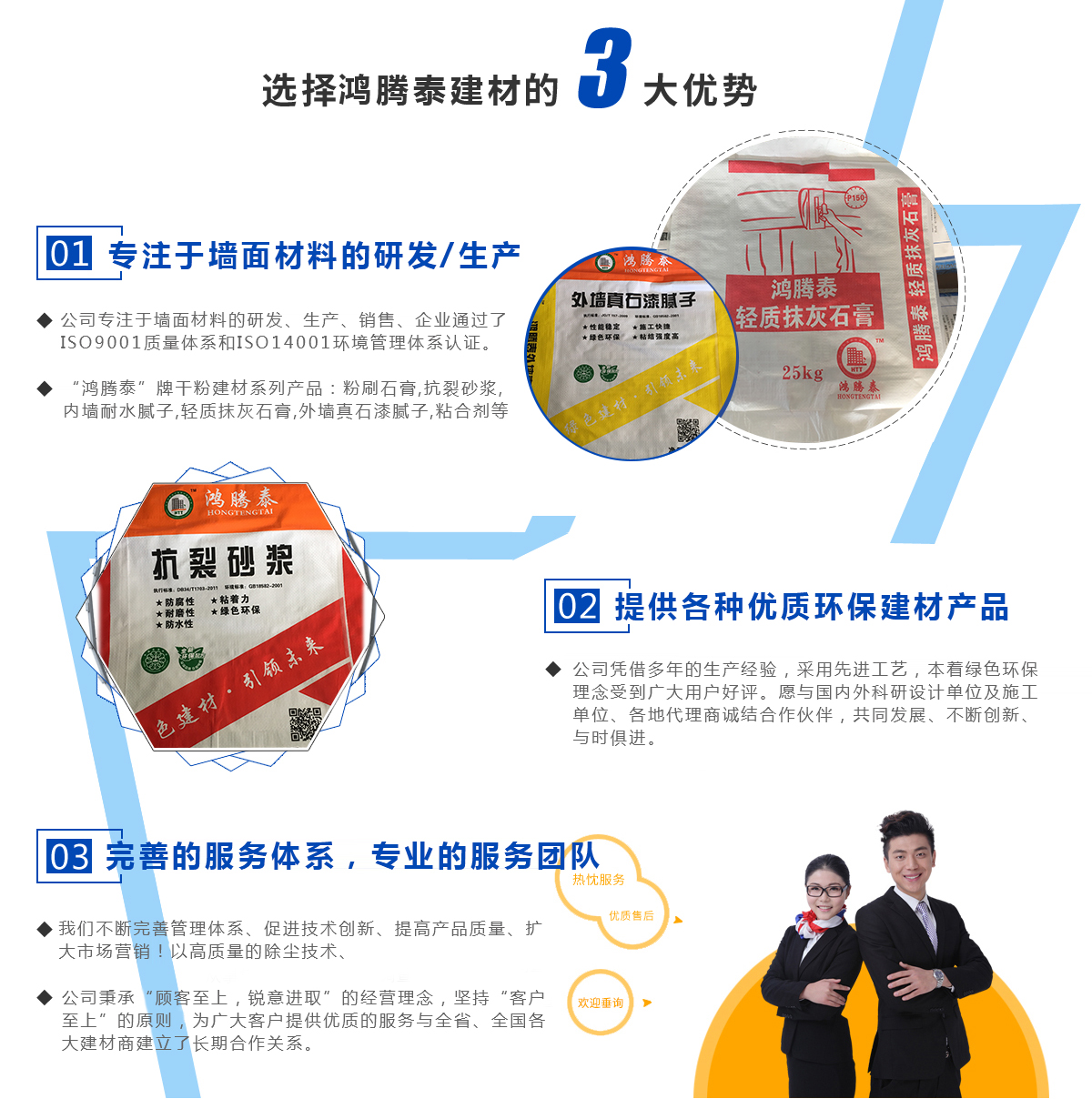 安徽鴻騰泰環(huán)保建材有限公司,坐落于中國科技明珠城合肥市。是一家專業(yè)建筑節(jié)能企業(yè),專注于建筑節(jié)能產(chǎn)品的研發(fā)與生產(chǎn),系統(tǒng)材料的集成及保溫工程的施工。主要銷售安徽浙江|江蘇地區(qū)的輕質(zhì)抹灰石膏,乳膠漆、膩子和水包水涂料以及安徽彈性膩子,質(zhì)量上乘的產(chǎn)品,一直深受著社會各界的好評。它是集科研、生產(chǎn)施工、銷售為一體的實業(yè)公司,且是華東地區(qū)涂料行業(yè)知名企業(yè)。我們一直致力于建筑用抹灰石膏保溫砂漿的開發(fā),生產(chǎn)及推廣事業(yè),多年的專業(yè)發(fā)展造就了成熟的品質(zhì),積累了豐富的經(jīng)驗,均屬技術(shù)先進、質(zhì)量上乘的產(chǎn)品,一直深受著社會各界的好評。我公司生產(chǎn)基地擁有寬敞、現(xiàn)代的標準廠房,現(xiàn)有有生產(chǎn)用房10000平米同時擁有2條全自動高速干粉混合生產(chǎn)線和微電腦灌裝機以及2套先進...
